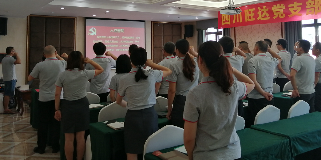 翌日,四川旺達(dá)黨支部黨員大會(huì)在莊嚴(yán)的國(guó)歌下正式拉開帷幕,在黨支部成員張小娟的領(lǐng)誓下,重溫入黨誓詞。